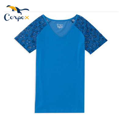 CorpoX 拉格蘭袖蕾絲涼感美容上衣-藍