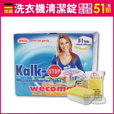【德國WECO】軟水抗石灰雙效洗衣機槽汙垢清潔錠 51顆/盒 獨立包裝(滾筒式和直立式皆適用)