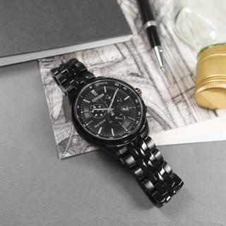 【CITIZEN 星辰】光動能 三眼計時 日期 藍寶石水晶玻璃 防水100米 不鏽鋼手錶 鍍黑 42mm(AT2145-86E)