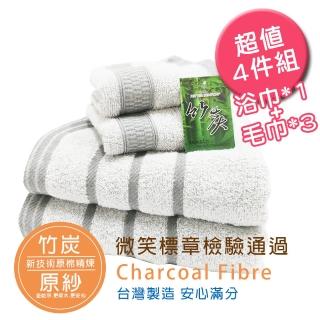 【梁衫伯】台灣製竹炭紗浴巾毛巾組(毛巾*3條+浴巾*1條)