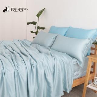 【pippi & poppo】涼感冰霸天絲 素色 枕套床包組 冰霧藍(加大)