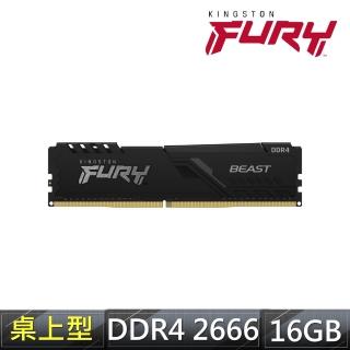 【Kingston 金士頓】FURY Beast 獸獵者DDR4-2666 16GB PC用超頻記憶體(★KF426C16BB/16)